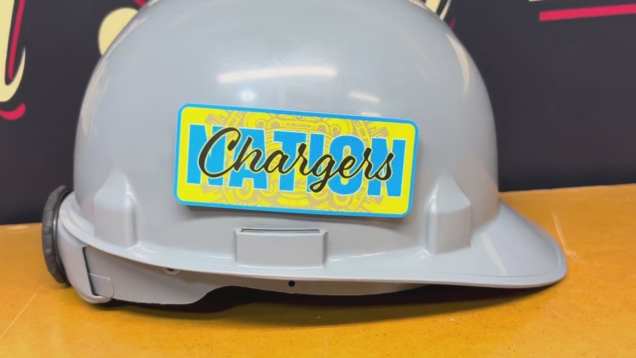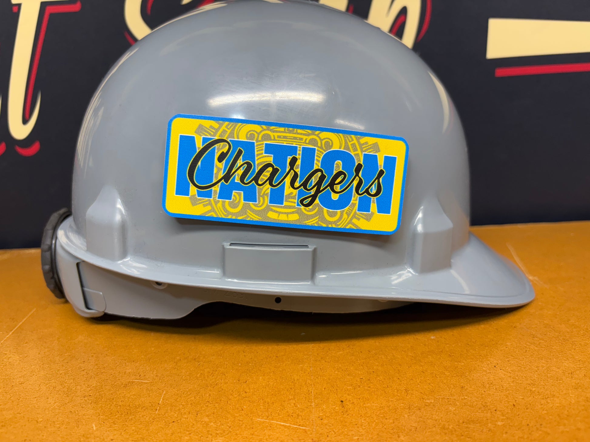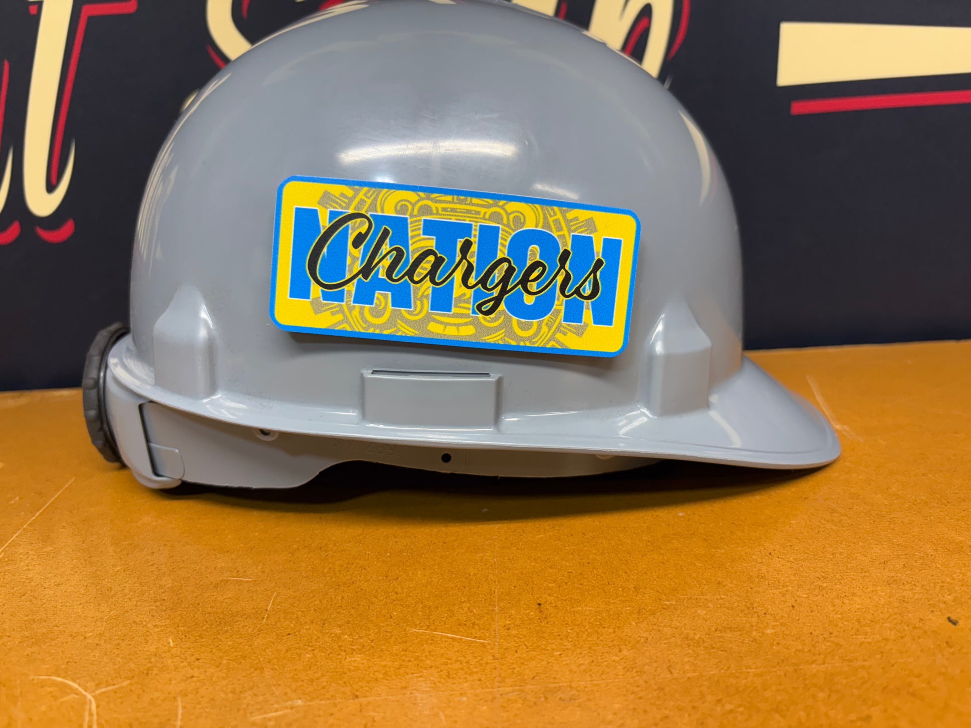Rep your team with pride wherever you go! This Chargers Aztec Calendar Design adhesive plaque is built tough and designed to stick on hard hats, toolboxes, lockers, and more. Made with a durable aluminum-style finish and bold lettering, it gives your gear that authentic old school vibe. Easy to apply, long-lasting, and perfect for die-hard Raider Nation fans who want to show loyalty on the job site or in the garage.
