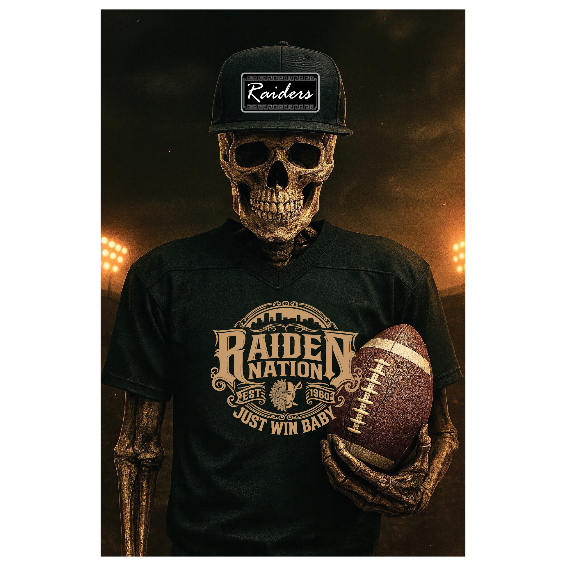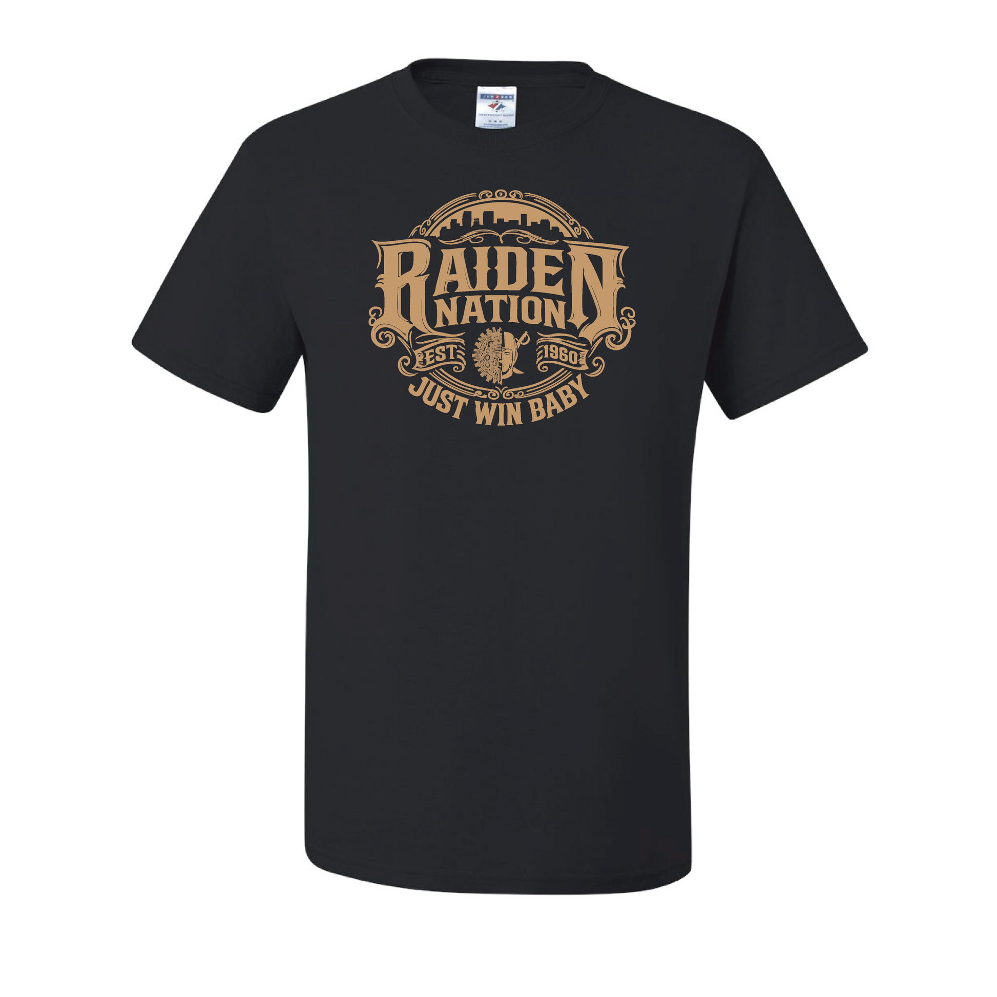 Show your pride in true Raider Nation style with this bold, vintage-inspired tee from Old School Print Shop (OSPS). Featuring the classic “Established 1960” and the legendary motto “Just Win Baby,” this design pays tribute to the silver and black with an old school edge.
